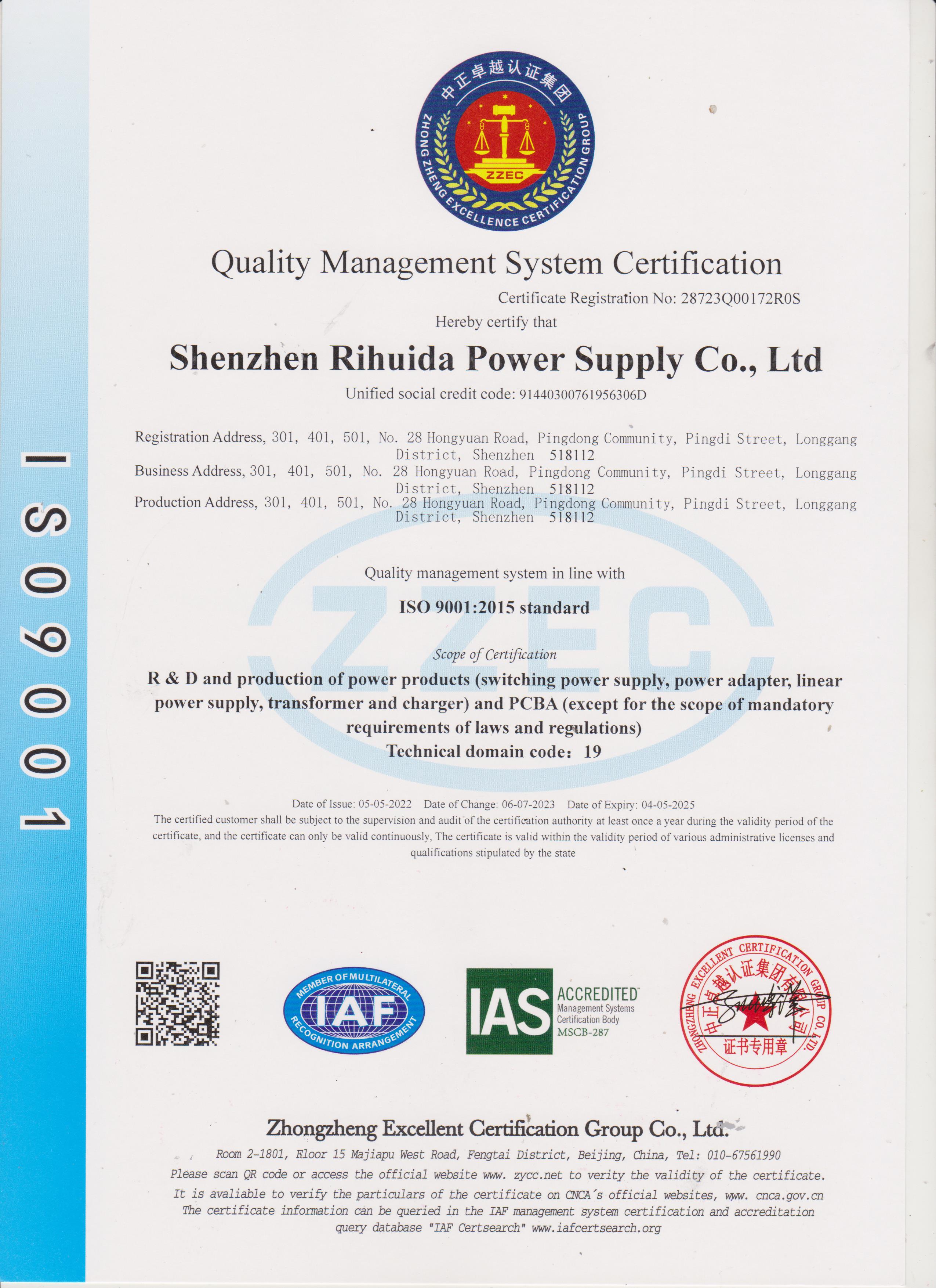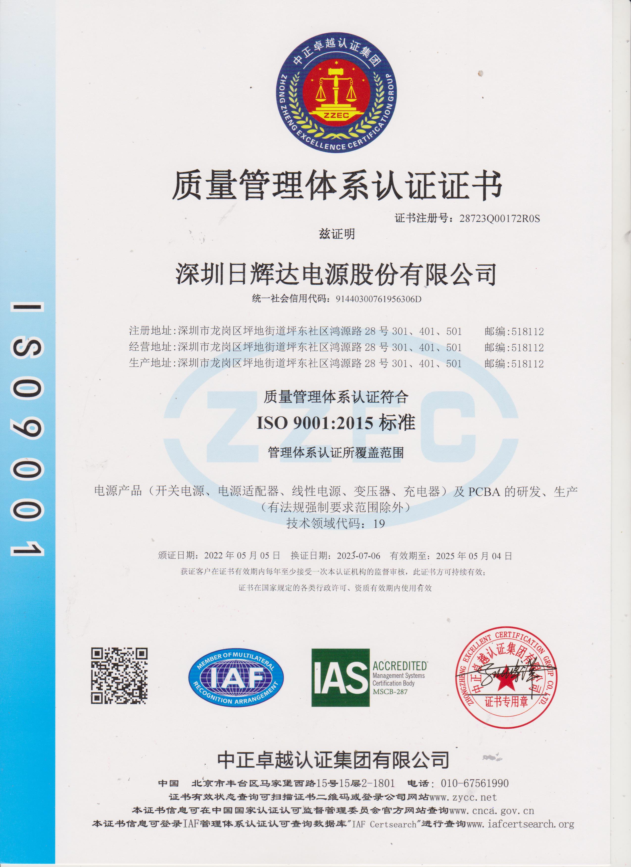 ISO 9001 Certificate (Chinese Version)