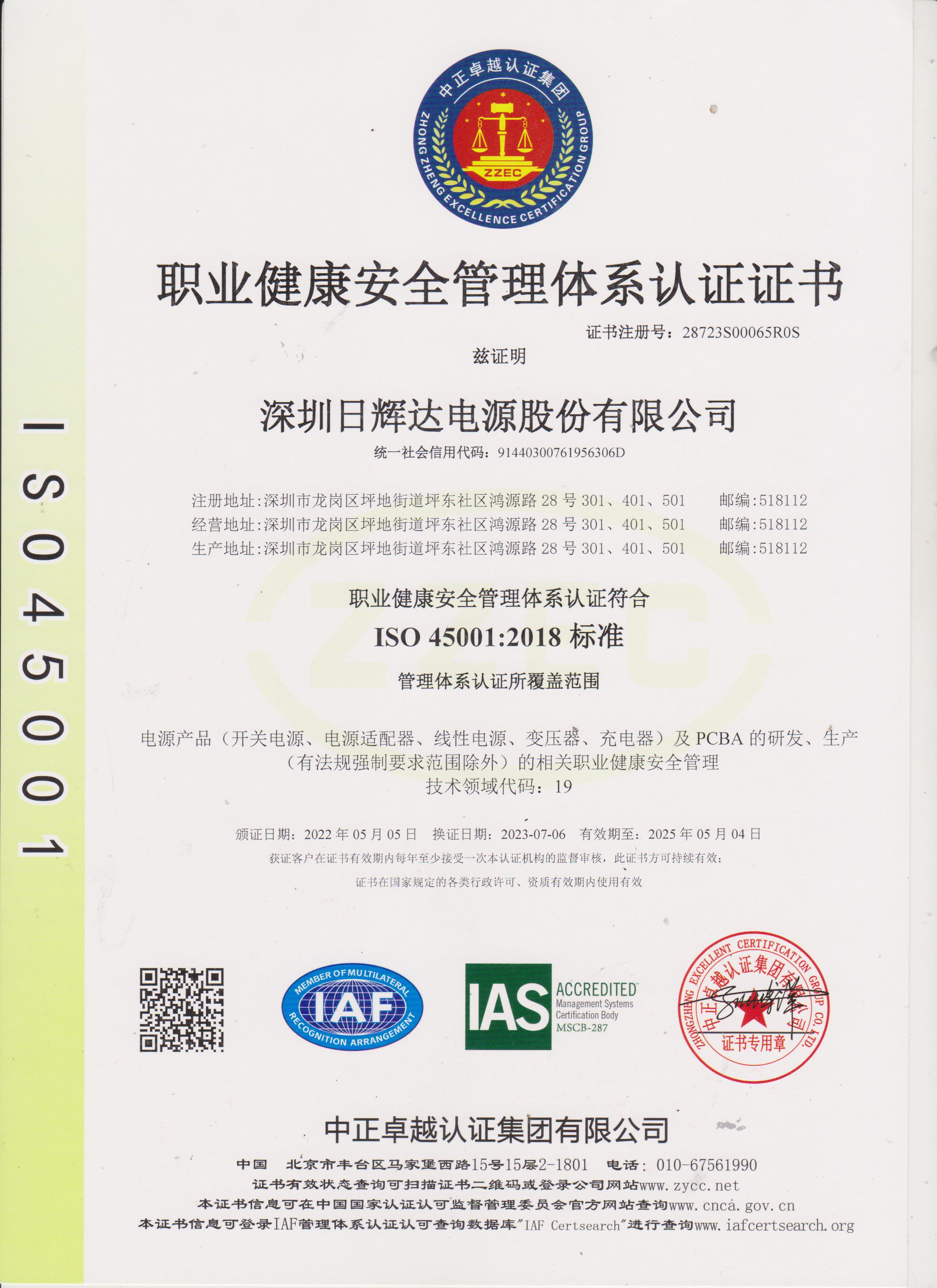 ISO 45001 Certificate (Chinese Version)