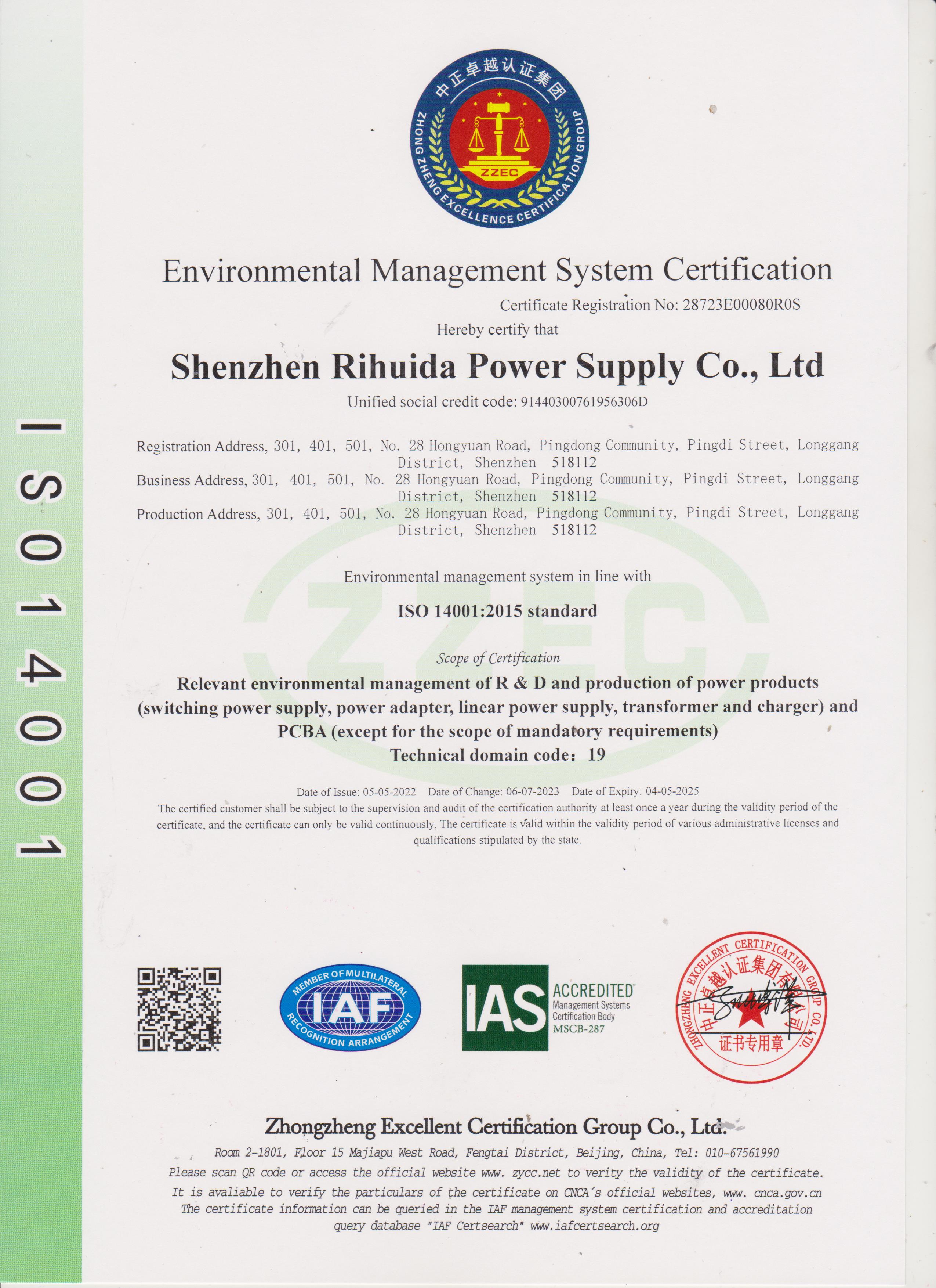 ISO 14001 Certificate (English Version)