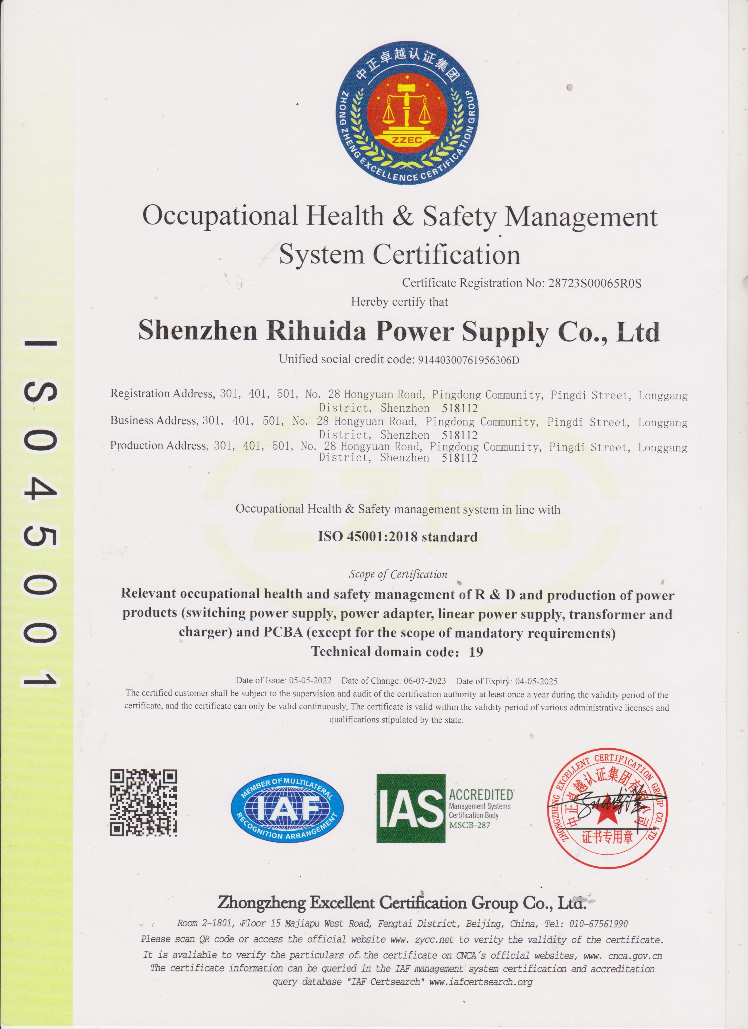 ISO 45001 Certificate (English Version)